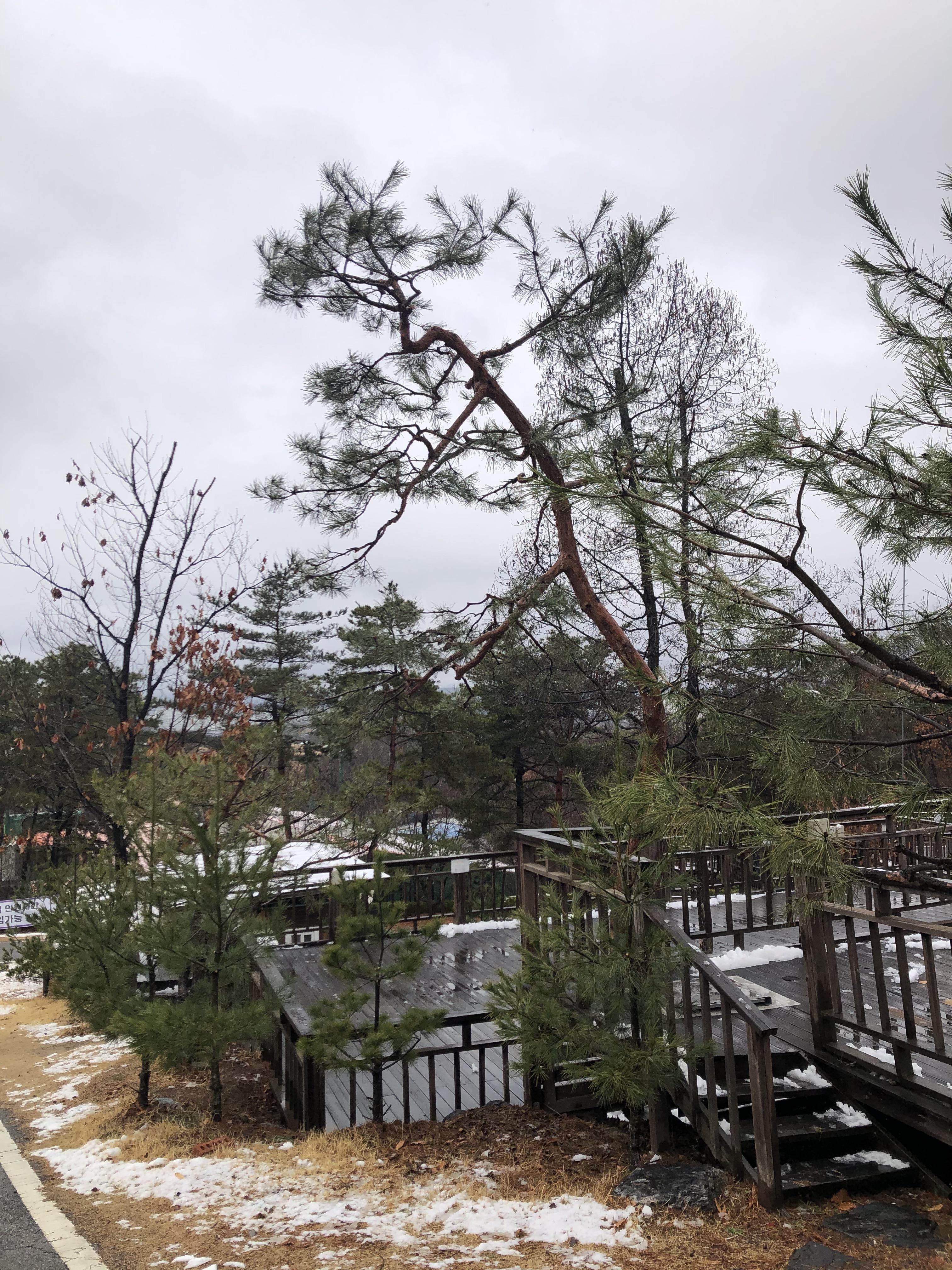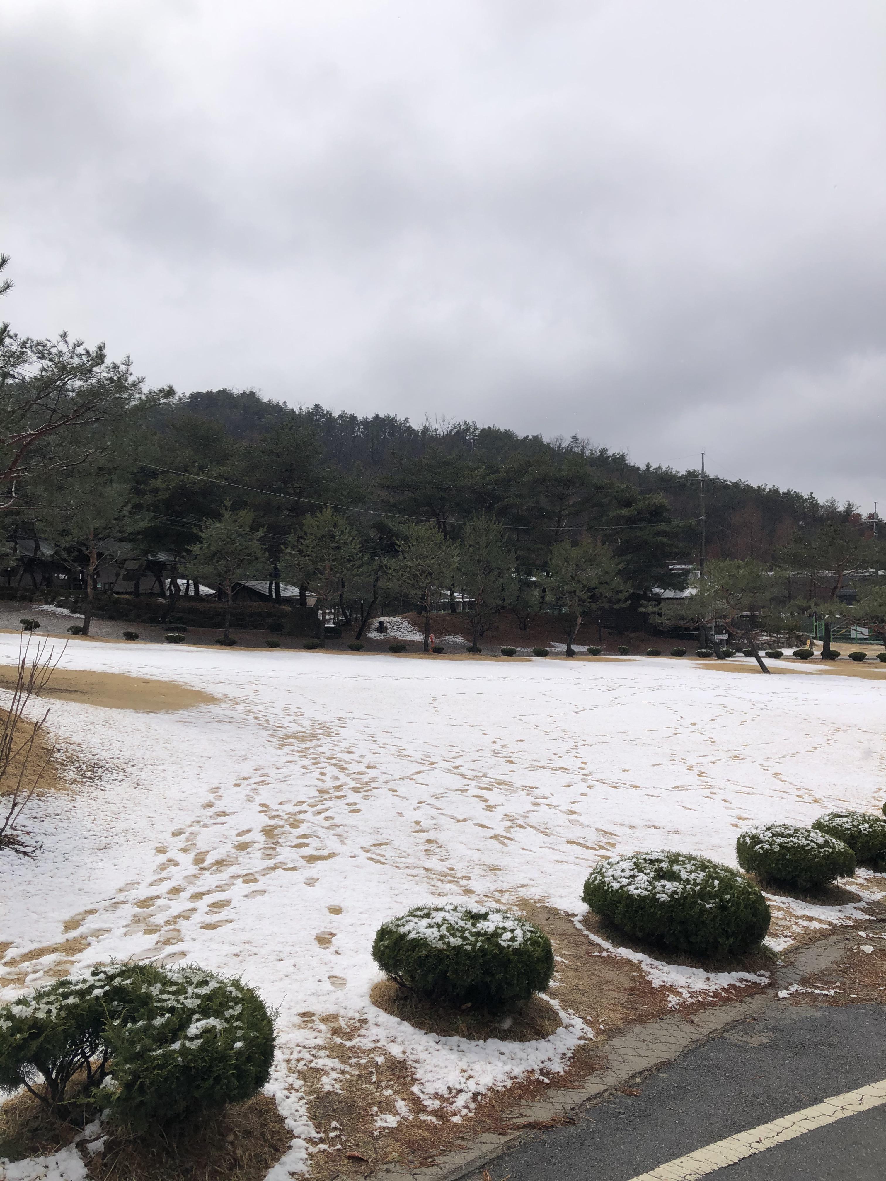 날씨는 별로 였지만, 캠핑 시작하고 처음 눈을 맞으며 캠핑을 즐길 수 있어서 너무 좋았다. 때마침 우레탄창을 가져갔기에 운치 있는 뷰까지~ㅎ