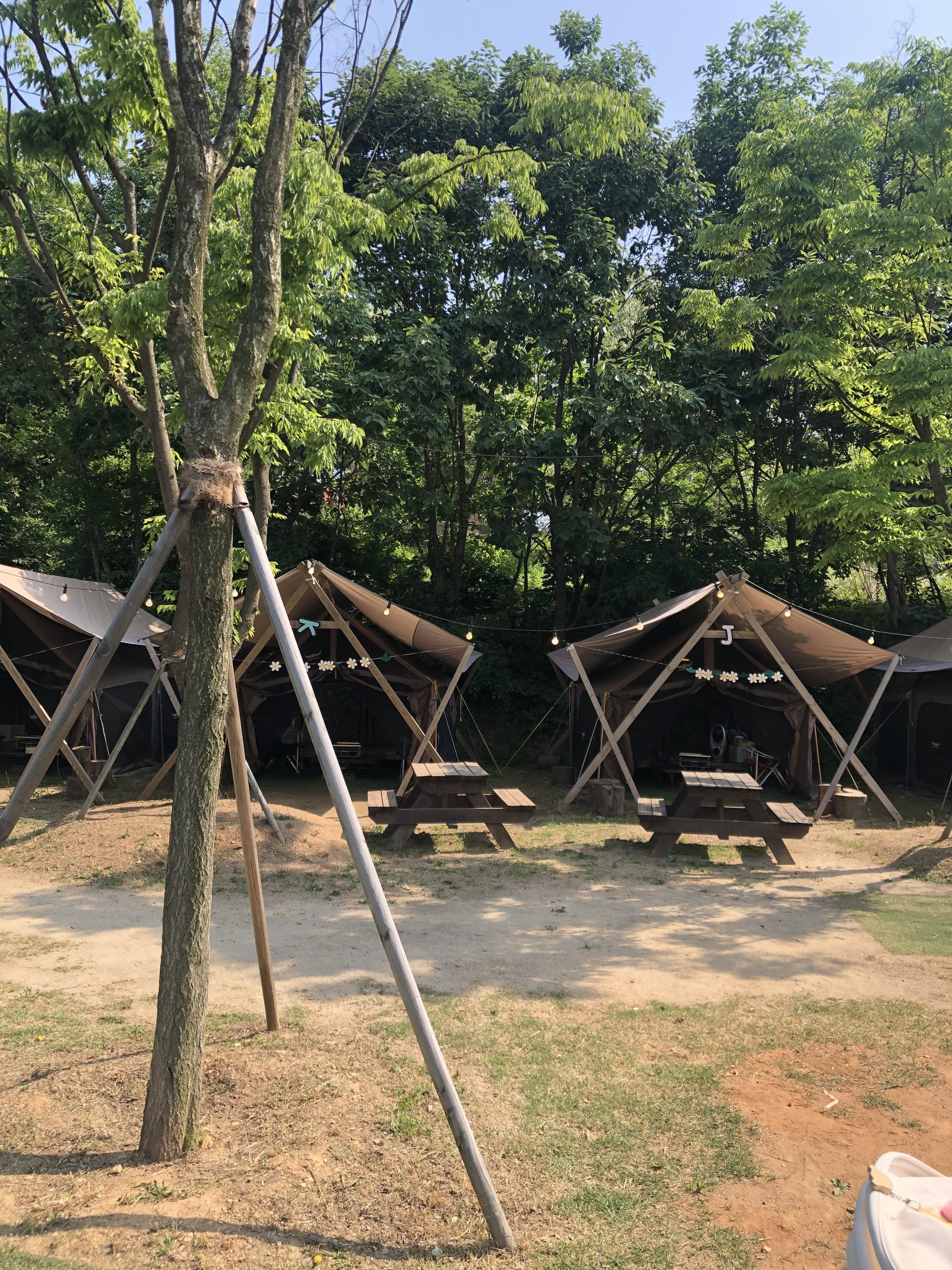 글램핑동과 일반 텐트동들로 나눠져 있었습니다. 우리가 예약한 곳은 일반 텐트동. 글램핑은 이미 일찌감히 예약이 끝났기에 아쉬운 마음으로 텐트로 예약을 했습니다.