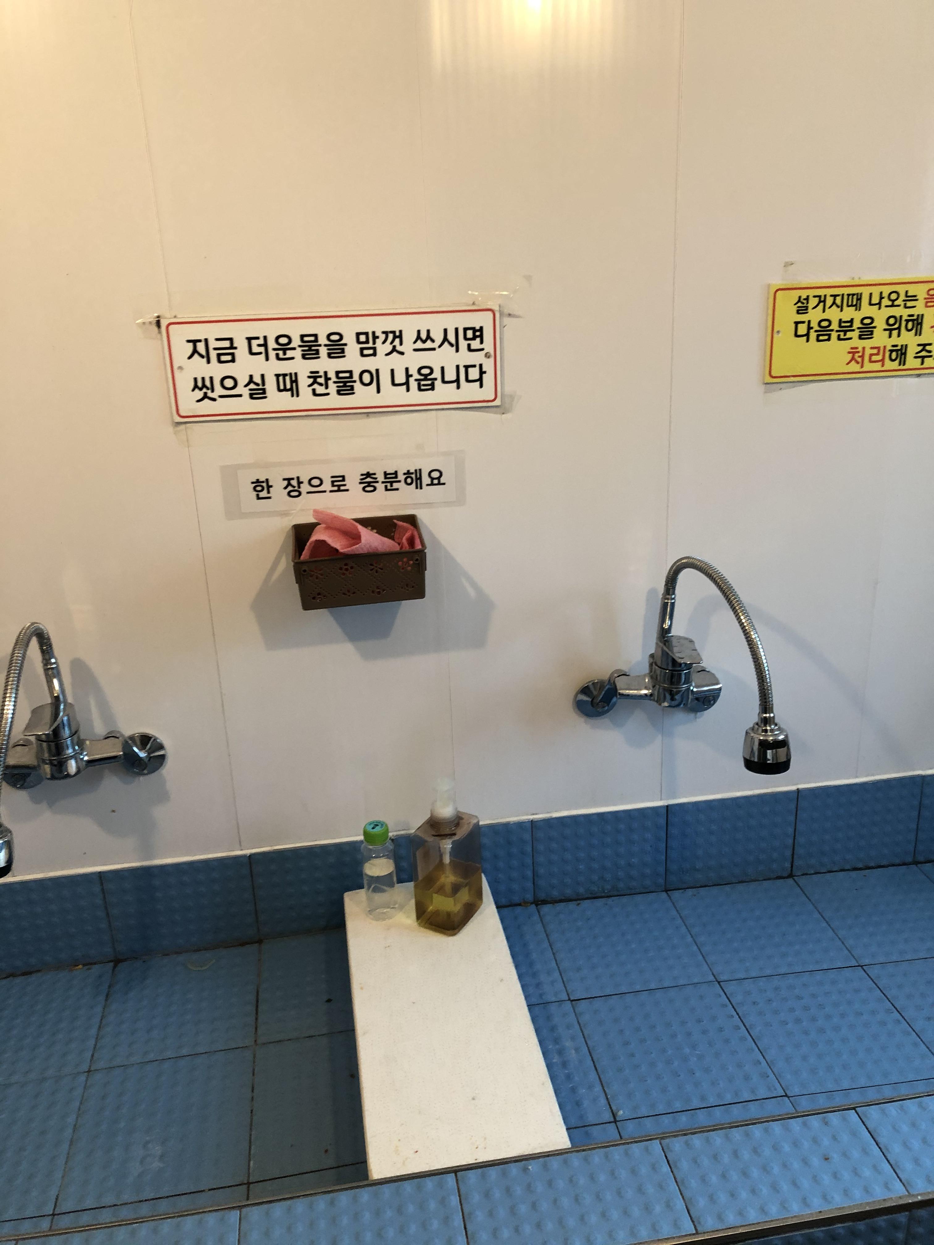 여름에 유용한 공동 냉장고와 싱크대가 아닌 타일로 만들어진 정감있는 세척대, 휴지가 구비되어 있는 깔끔한 화장실, 드라이기까지 센스있게 구비된 샤워실 까지. 후후