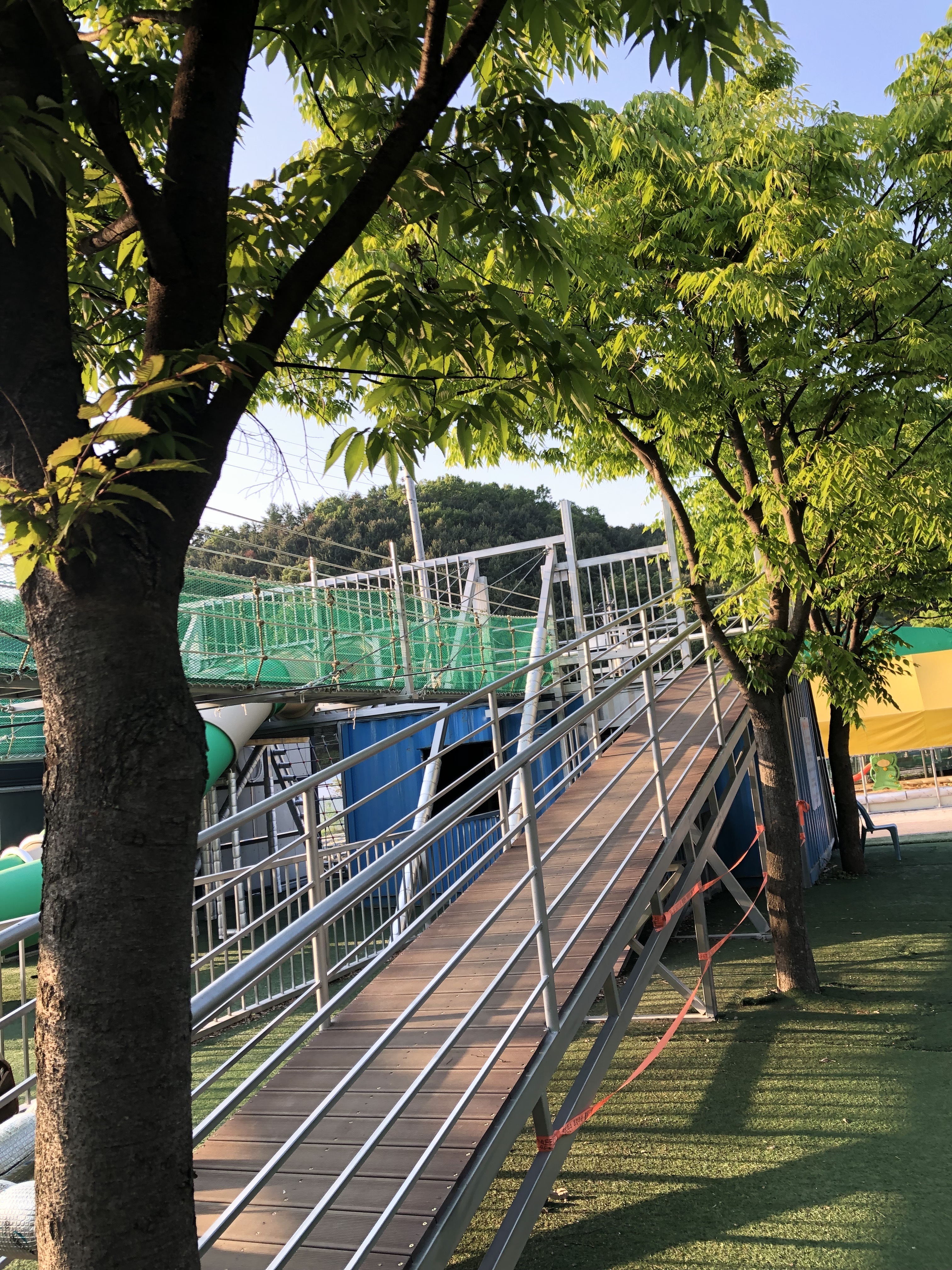 규모에 맞게 수영장도 크게 2개나 있고, 놀이터도 암벽등반까지 있는 큰 규모로 구성되어 있습니다. 당연 방방도 나이에 따라 2개로 나눠져 있고요. 넓은 잔디밭이 있어 이곳에서는 이벤트가 항시 열립니다.