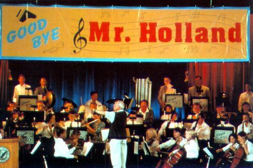 They all gather to perform the symphony he had composed, called "American Dream." The movie ends with Mr. Holland conducting it himself.