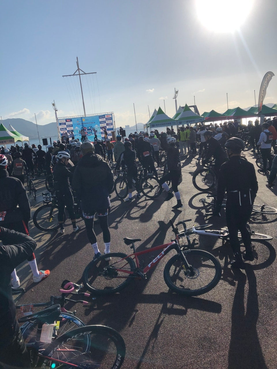 다와서 7키로를 남기고 다리에 쥐가 나버리는 바람이 걸어서 결승전까지 갈 뻔했지만, 지인이 챙겨준 포도당 캔디를 우걱우걱씹어대며 겨우 들어올 수 있었죠. 바람이 정말 정말 정말 많이 불고 강하게 불었습니다. 오른쪽 왼쪽 앞 가리지 않고 때리는 바람에 라이딩을 다 끝내고 나서는 다리는 물론이고 어깨가 그렇게 아플수가 없었습니다.