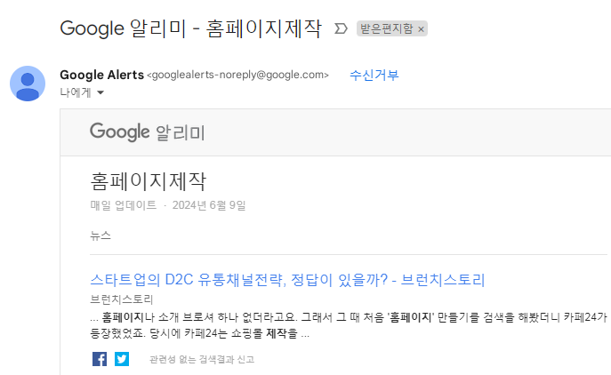 매번 자주 검색을 하는 단어들이 정해져 있다면 구글 에서 제공하는 알리미 기능을 이용하면 편하게 메일로 검색 결과를 받아 볼 수 있습니다.