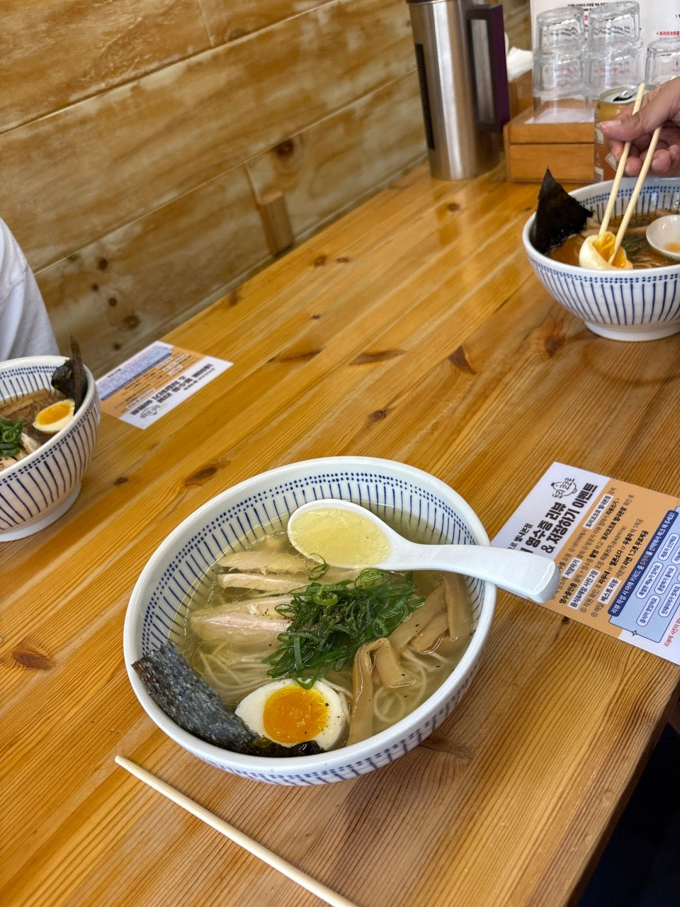 가게 여기저기 라멘에 진심인 사장님의 의지가 보였습니다. 문구들도 그렇고 라멘 연구를 위해 일본에 다녀오신 듯한 사진들도 여러장 붙어 있었습니다. 이렇게 노력하시는 곳이나 당연 맛이 없을 수가 없는 거겠죠~