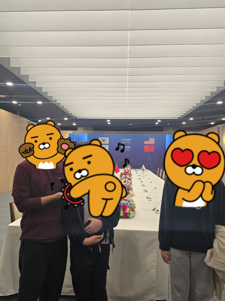 당연 우리는 그 사실을 몰랐고, 금관은 문 앞에서 휴대폰으로 확대해서 사진 하나 찍는걸로 만족해야 했죠. ㅜㅜ 대신, APEC 회담이 열렸던 곳을 들어가 볼 수 있다고 하여 줄 서서 10분 정도 기다려 들어가볼 수 있었습니다.