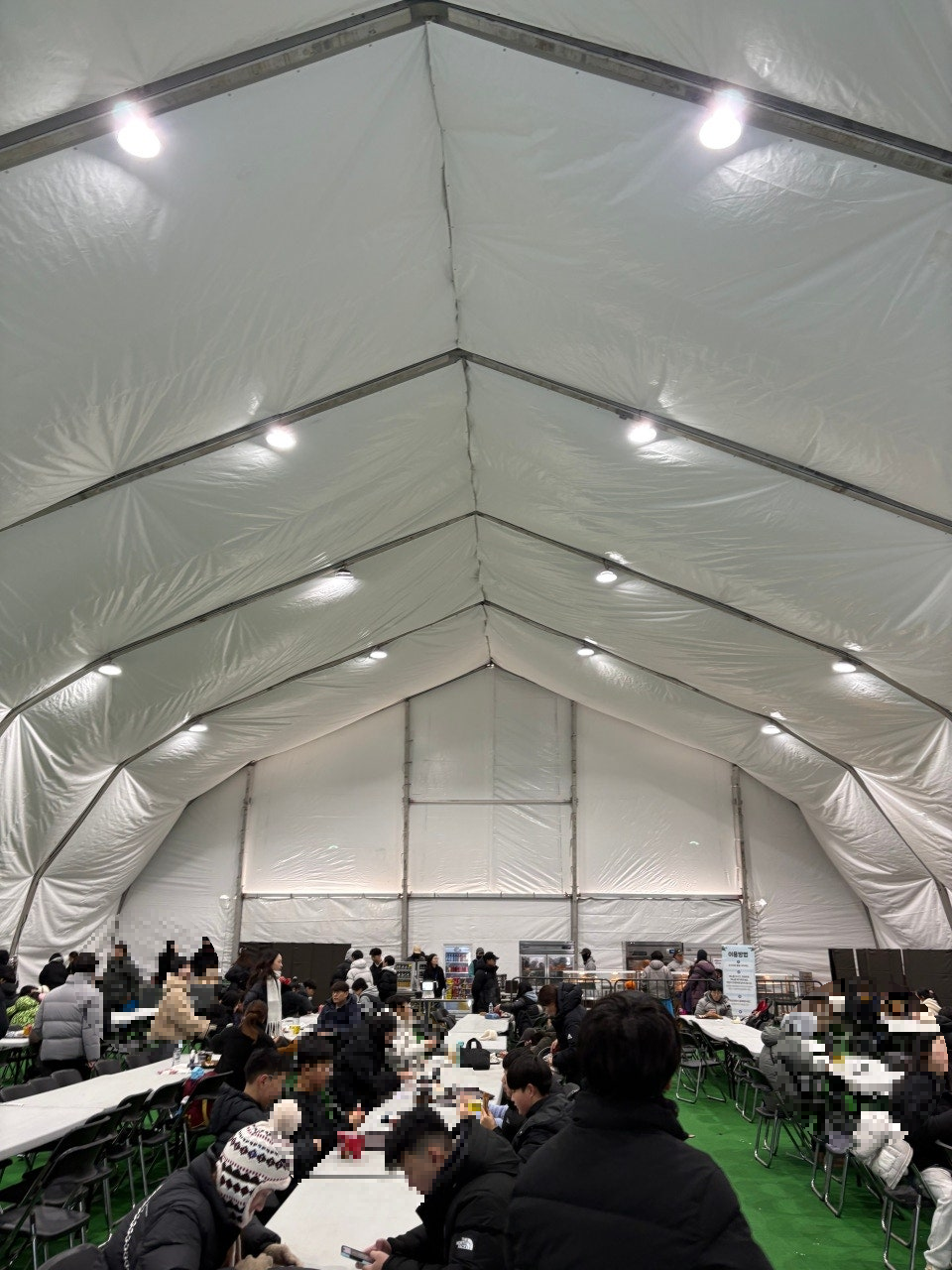 그렇게 두어시간 놀고 간식을 먹으러 식당에 들어갔고, 식당 규모에 놀랐습니다. 밖에서 보면 조금 큰 정도라 생각했는데 막상 안에 들어가니 천장이 한 3-4층 높이로 아~주 시원했습니다. 테이블도 무슨 큰 행사 하는 것처럼 수십개나 있어 자리 걱정없이 먹거리만 사가지고 와서 바로 앉아 먹을 수 있었습니다. 라면, 소세지, 어묵 등 간식거리가 있었고, 그 중에서 핫도그를 먹었는데...이건 비추합니다. 소세지가 너무 너무 너무 작아요. 반죽도 너무 너무 너무 묽어서 아이가 먹다 삼키지를 못할 정도...ㅜㅜ
