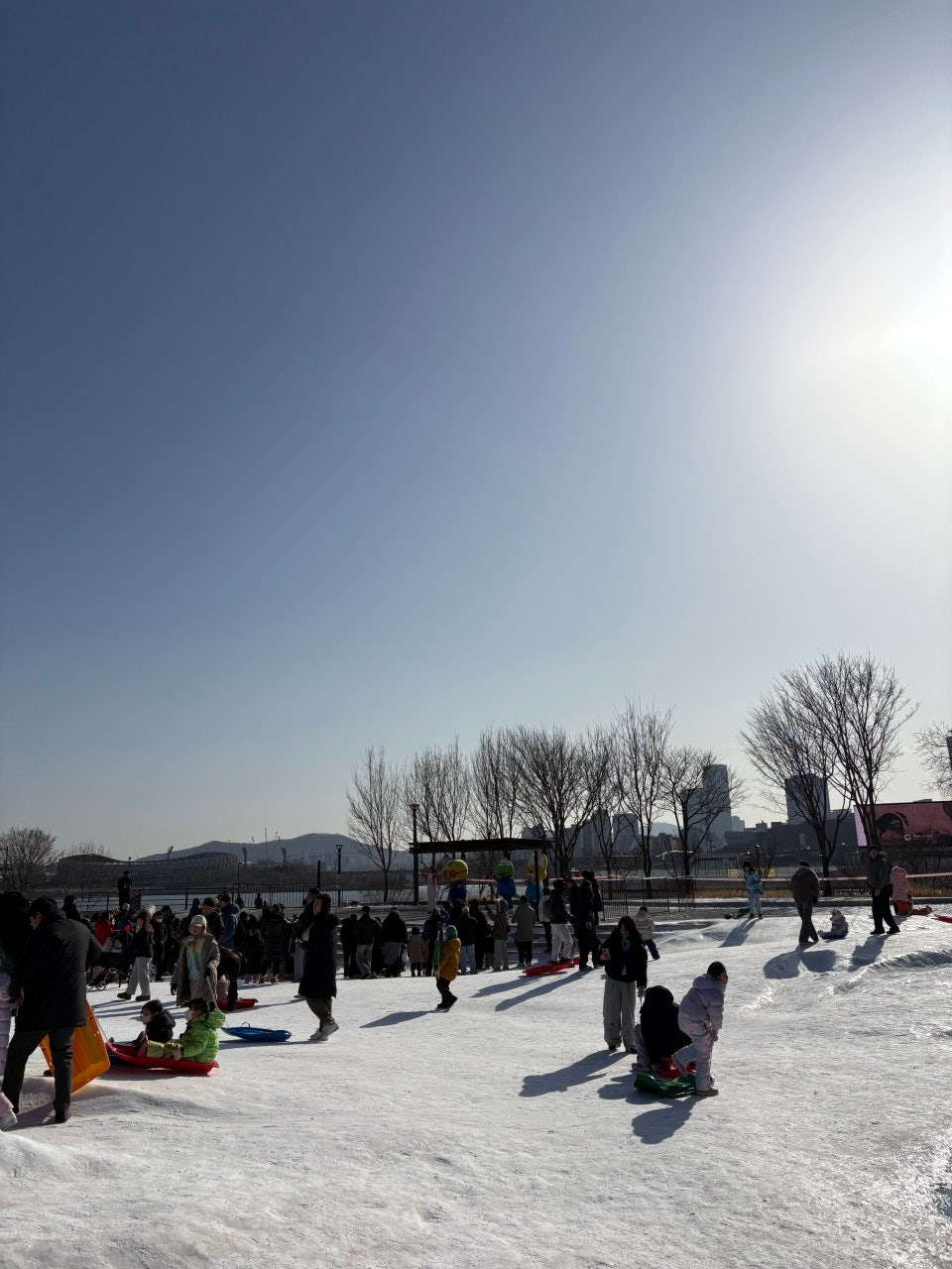 거창한 계획없이 아이와 함께 겨울을 즐기고 싶을 때 그냥 바로 즐길 수 있다는 점이 큰 장점입니다. 접근성도 좋고 사람들도 많아 기분도 나고요. 다만, 제대로된 눈썰매나 행사를 즐기시려는 분들은 교외로 나가시거나 산천어축제 같은 곳으로 가보시는 걸 추천드립니다.