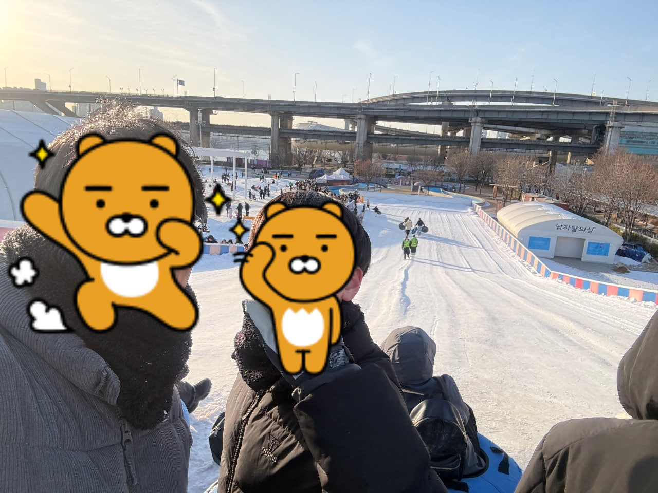슬로프는 사람이 많아 줄을 한참 서야 합니다. 그래도 회전율이 좋아 길어야 10분 정도지만 추운 날씨에 10분 동안 서 있기가 쉽지많은 않아요. ㅜㅜ 슬로프는 3번 정도 탄거 같고, 한쪽에 넓직하게 자리한 썰매장에서 한참 놀았습니다.